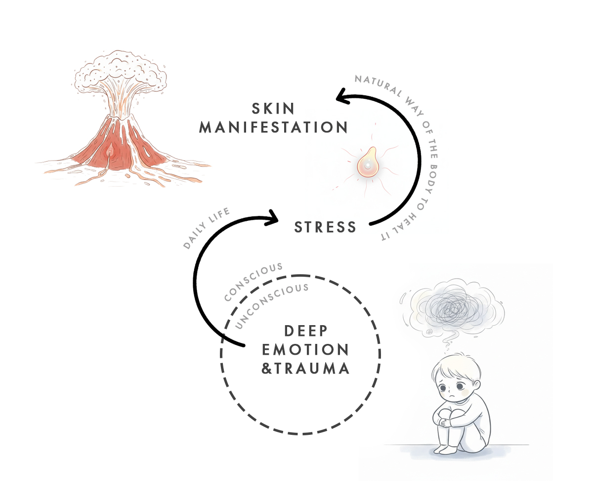Around the age of 27, I discovered the profound link between skin and emotions. Immediately after experiencing very strong romantic emotions, I saw—within minutes—about ten large white pimples appear on my chest, ready to burst. I was stunned. I had never seen anything happen so quickly and so intensely. Observing this phenomenon was a true game changer.